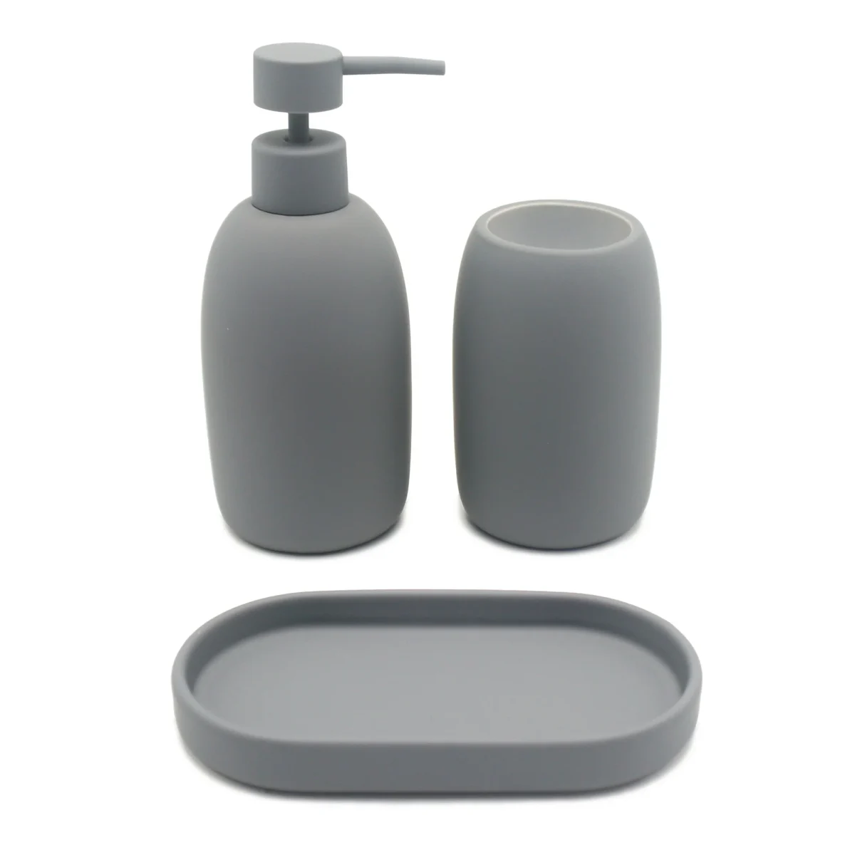 - The Mainstays Ceramic Stoneware Bath Accessories 3-Piece Set is available in 2 colors